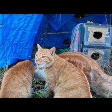 夕方のフェリー乗り場に猫大集合!釣り人からの魚プレゼントに歓喜する瞬間が可愛すぎた